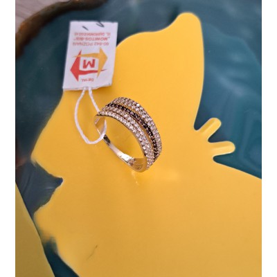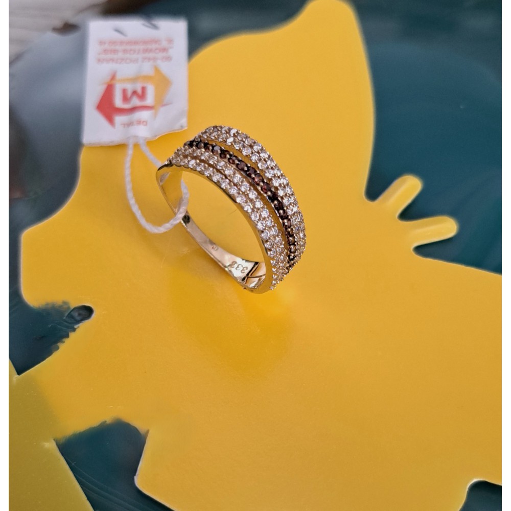 Pierścionek wykonany jest ze złota próby 333 Pierścionek obrączkowy z kamieniami, kamienie to czarne onyksy i białe o brylantowym blasku, którego nie odzwierciedli zdjęcie. Szerokość przodu pierścionka 7,6 mm. Obrączka o szerokości w dolnej części pierścionka 7,7 mm, grubość 1,1 mm Pierścionek w połysku polerowanego złota w jednolitej barwie. Na pierścionku wybita próba złota, Cecha Państwowego Urzędu Probierczego.